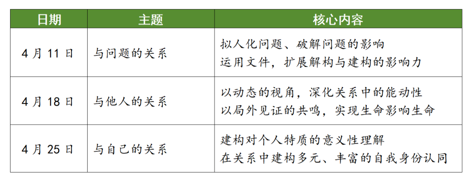 ——人作为意义性的存在,脱离不了“关系”,如何在“人与世界”、“人与问题”、“人与他人”、“人与自己”等关系中运用叙事疗法是2026年课程设计的核心。