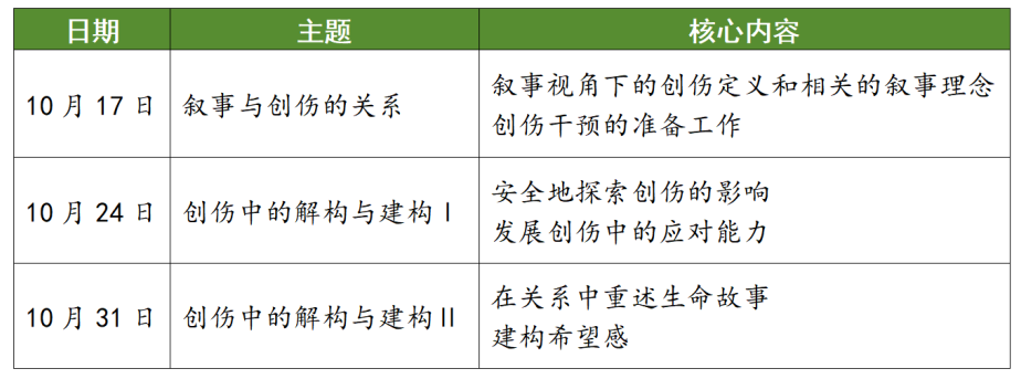 *进阶班是在基础班学习上的深化、精进与扩展,点击了解更多:《破茧成蝶:叙事疗法进阶班探索“助人自助”新路径》